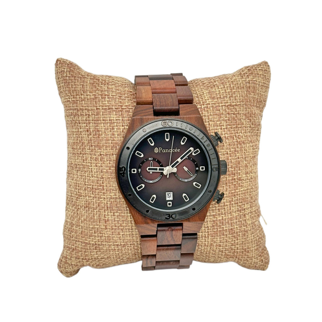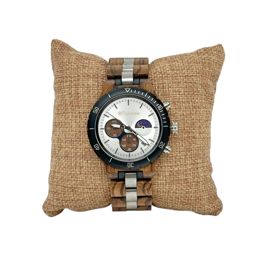 Les montres en bois sont des pièces d'horlogerie uniques qui marient l'élégance intemporelle et l'aspect chaleureux du bois naturel. Fabriquées à partir de bois véritable, ces montres offrent un style distinctif et respectueux de l'environnement, en faisant ressortir la beauté de la nature à votre poignet. Le bois utilisé pour ces montres est choisi avec soin pour sa qualité et ses caractéristiques esthétiques. Chaque montre est fabriquée à la main, ce qui lui confère une touche artisanale et une personnalité unique. Les différentes essences de bois utilisées, telles que l'ébène, le bambou, le santal ou le noyer, offrent une variété de teintes, de motifs et de grains, permettant ainsi de choisir une montre qui reflète votre style et vos préférences. En plus de leur apparence distinctive, les montres en bois sont légères et agréables à porter. Le bois offre une sensation de douceur et de chaleur au contact de la peau, créant ainsi un confort naturel. Les bracelets en bois sont conçus pour s'adapter parfaitement au poignet, offrant un ajustement précis et un confort optimal tout au long de la journée. Les cadrans des montres en bois sont souvent minimalistes, mettant en valeur la beauté naturelle du bois. Ils peuvent être dotés de détails subtils, tels que des index ou des aiguilles, qui contrastent harmonieusement avec le fond en bois. Certains modèles peuvent également intégrer des cadrans avec des affichages multifonctions, offrant des fonctionnalités pratiques telles que la date, le chronomètre ou les phases de la lune. Les montres en bois sont équipées de mouvements précis et fiables, garantissant une mesure précise du temps. Les mouvements à quartz sont couramment utilisés, offrant une grande précision et une maintenance minimale. Certains modèles haut de gamme peuvent être équipés de mouvements automatiques, alimentés par le mouvement du poignet, ajoutant ainsi une touche d'artisanat horloger traditionnel à la montre en bois. Outre leur esthétique et leur fonctionnalité, les montres en bois sont également un choix respectueux de l'environnement. En utilisant du bois provenant de sources durables, elles réduisent l'impact environnemental par rapport aux montres fabriquées en matériaux synthétiques ou en métaux. Le bois est un matériau renouvelable et biodégradable, ce qui en fait une option écologique pour les amateurs de montres soucieux de la durabilité. Que ce soit pour une occasion formelle ou décontractée, une montre en bois ajoute une touche naturelle et élégante à votre poignet. Elle est non seulement un accessoire fonctionnel pour mesurer le temps, mais aussi une déclaration de style qui reflète votre goût pour l'authenticité et la beauté de la nature.